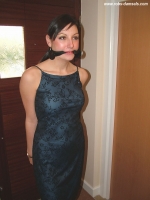 The pro that she is now, Manda is featured in yet another bondage plot in this update. Wearing a sexy dress and a bit too much makeup as if she was going on a night out she now finds herself led into the room cleave-gagged and handcuffed. She is soon upstairs with her ankles bound with a scarf.