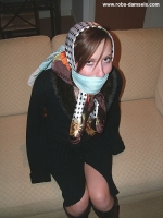 Finally as Sophia is ready, she is led to the lounge and sat on the sofa having been very tightly bound and gagged. Here she realises that she has no way of getting free. She remarked afterwards that she was getting very hot under the ropes and gags!